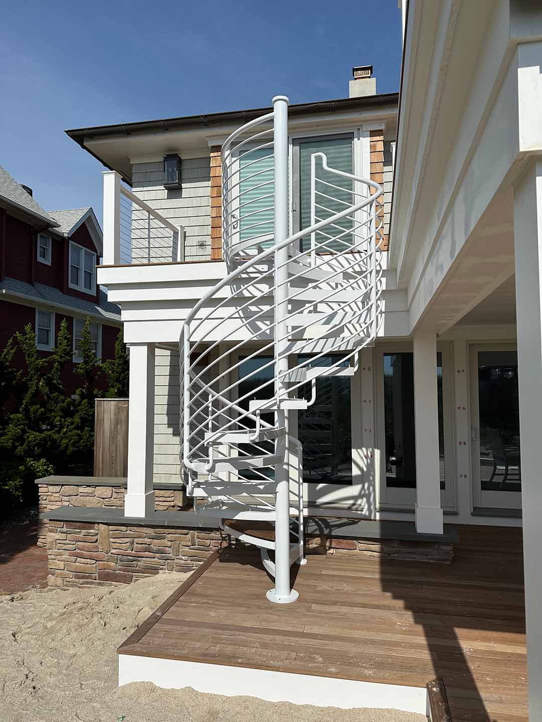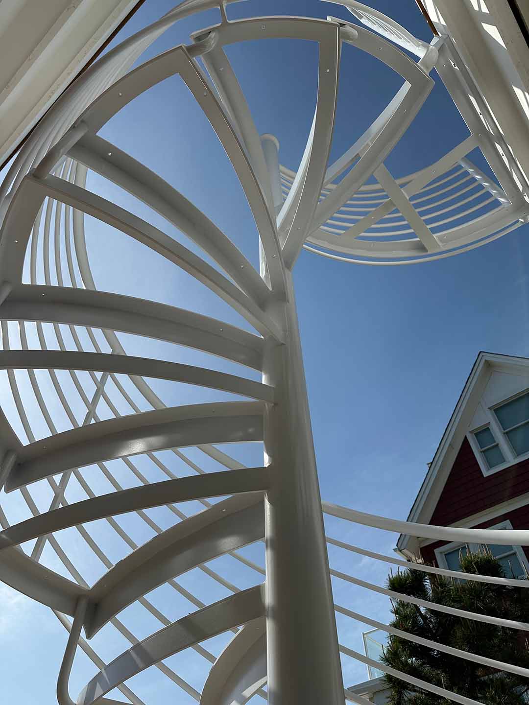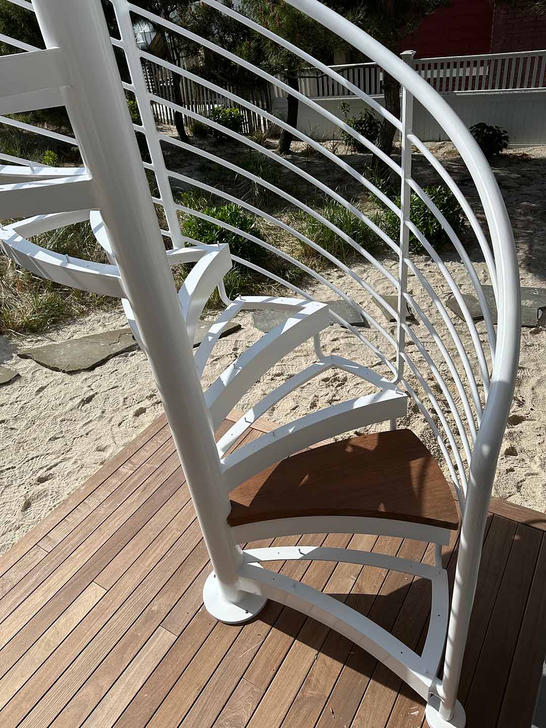 Recently installed this custom spiral staircase, meticulously crafted to perfection. This stunning piece features beautifully curved horizontal line rails paired with custom-made mahogany treads, all finished in a durable white acrylic. Perfectly designed & meticulously fabricated for a sea shore home in Bay Head, NJ, this staircase promises not only elegance but also enduring quality. Elevate your home’s aesthetic and functionality with a staircase that is as unique as your style.