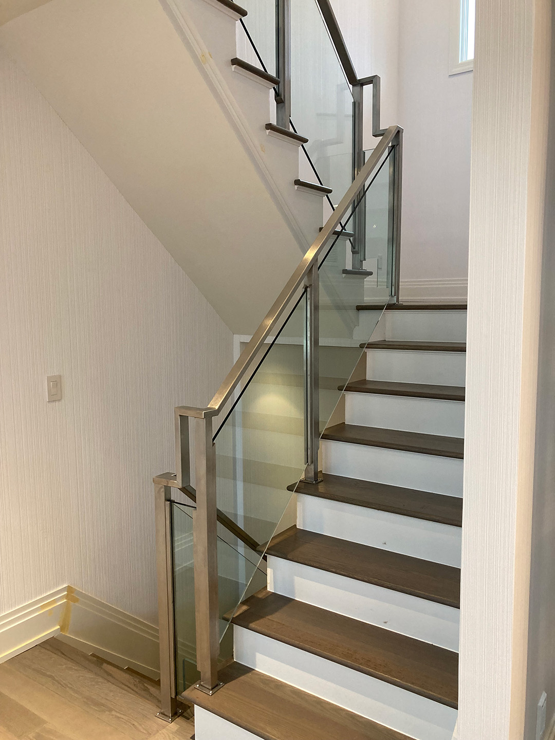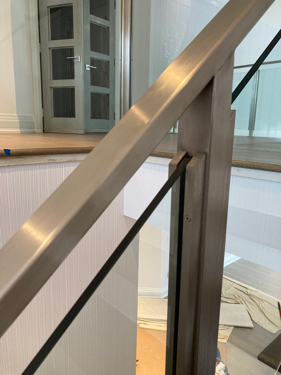 Description: Stainless steel framed ½’’ glass rail , side vertical post mounting channels, matching stainless cap rails.